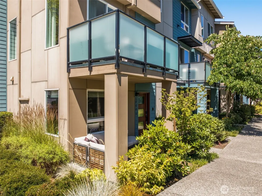 Premium corner unit in a desirable Pulte community offering privacy, natural light, and direct access to green space and a private park. Modernized 2023 updates include white oak laminate flooring throughout, fresh paint, upgraded fixtures, and lighting. Full-house AC with central on the upper level and mini-splits on lower floors. Modern open layout with en-suite baths in all bedrooms, powder on the main, 2 patios, 2-car garage, attic storage, and security system. Staged and move-in ready.