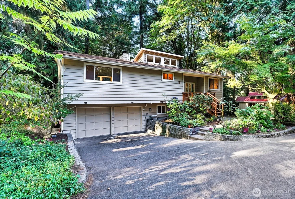 Beautiful Lake Forest Park home in convenient location! Wood beamed vaulted ceilings, large light-filled windows & wood burning fireplace bring warmth & comfort. Nestled on a private 29,762 square foot lot w/McAleer Creek meandering at the edge of the property. Open concept kitchen w/tiled floors, granite counters & new Stainless-Steel appliances. Formal dining just steps to the upper-level deck bringing the sights and sounds of the great outdoors to your fingertips. Spacious primary suite with walk-in closet. 2 more bedrooms on the main floor with a full bath. Fully finished daylight basement w/family rm /4th bedroom w/wood burning stove. Deeded beach rights w/boat launch w/membership to the LFP Civic Club. Shoreline School District!