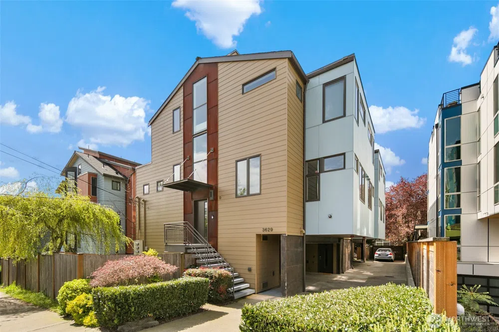 Sophisticated. Unique. Undeniably Fremont. This isn’t your typical townhome—it’s a thoughtfully crafted residence blending elevated design with character-rich details. From the reclaimed timber staircase to distinctive metal railings, every inch tells a story. The custom Pedini kitchen, with metamorphic dimmable lighting for enhanced ambiance, anchors the open-concept main level, offering sleek function & European flair. Upstairs, 2 spacious bedrooms provide privacy and comfort, while a sun-filled loft leads to a rooftop deck with views. Don’t miss the rare, fully fenced yard with space for gardening, pets, or play. With an attached garage and located blocks from PCC & the Burke-Gilman Trail, this home is a standout in both style + setting.