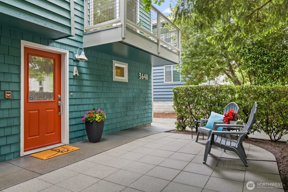 Timeless appeal & meticulous care blend perfectly with 4 outdoor spaces on a calm & quiet street. The serene courtyard is great for entertaining & relaxing in nature. An ample updated granite & stainless kitchen opens to bright living & dining. The primary bedroom includes an incredible walk-in closet & Juliette balcony. A very private rooftop deck retreat showcases phenomenal views of Fremont, Queen Anne, Aurora Bridge, Mt Rainier, exceptional sunsets & holiday fireworks! Bonus points: a large, attached garage & extra storage! Just steps to the vibrant heart of Fremont’s lively eclectic shops, restaurants, Sunday market & Solstice Festival. Solid HOA with major maintenance done (recent paint & new roof) provides years of care-free living!