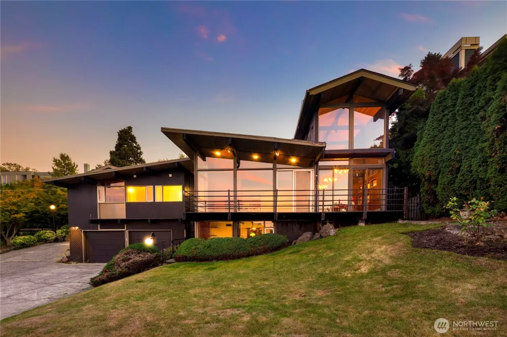 Commanding water views and endless opportunity come together in one of Magnolia’s rare large lots. Overlooking Shilshole Bay, watch boats, tides, and wildlife in the canal or stroll across the Ballard Locks. Distinctive details of this gothic, mid-century home include wood ceilings, spiral staircases, stained glass, skylights, and a grand sunroom opening to a poolside patio. A four-car attached garage, secondary garage, and dual driveways provide exceptional storage and flexibility. Set on a remarkable 18,600 sq ft lot, this historic residence stands poised for its next evolution. Whether you preserve its character, reimagine with modern updates, or create something new under NR2 zoning, this property is a rare canvas of possibility.