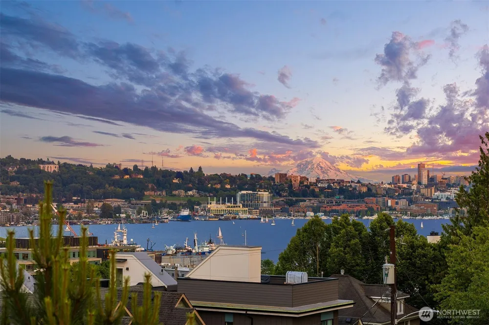 Northwest Contemporary townhome boasting expansive Lake Union views within a LEED Platinum designed community. Created by Johnston Architects, this spacious 2 Bed+ den townhome is part of a 7-unit boutique enclave located just blocks from the Burke-Gilman Trail, Gas Works Park and all the shops & eateries that make Fremont & Wallingford unique. It features bamboo floors, an open-concept living area & numerous sustainable elements like radiant heat, triple-pane windows & a private rooftop deck that harvests rainwater while offering panoramic city, lake & mountain vistas. Perfect for July 4th Fireworks! Each Bedroom w/ its own bath & a generous den on the 2nd flr is ideal for home office. Shared garage w/1 pkg space + spacious storage unit.