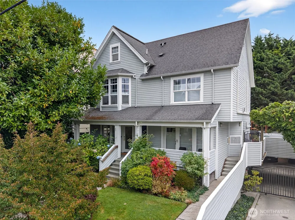 Nestled on a quiet tree-lined street just steps from the best of Capitol Hill, this light-filled Craftsman-style condo lives like a single-family home. Thoughtfully updated with new flooring, fresh paint, and a beautifully remodeled kitchen, it offers an ideal layout with open-concept living upstairs and two spacious bedrooms below large shared bath—each with access to a private patio. Enjoy your morning coffee on the covered front porch or host friends in the communal courtyard. Includes secure garage parking, powder & utility room, large storage room. Stroll to shops, cafes, restaurants, parks, and light rail for effortless commuting. Pet friendly, well-run HOA with low dues. The perfect blend of charm, comfort, and city convenience!