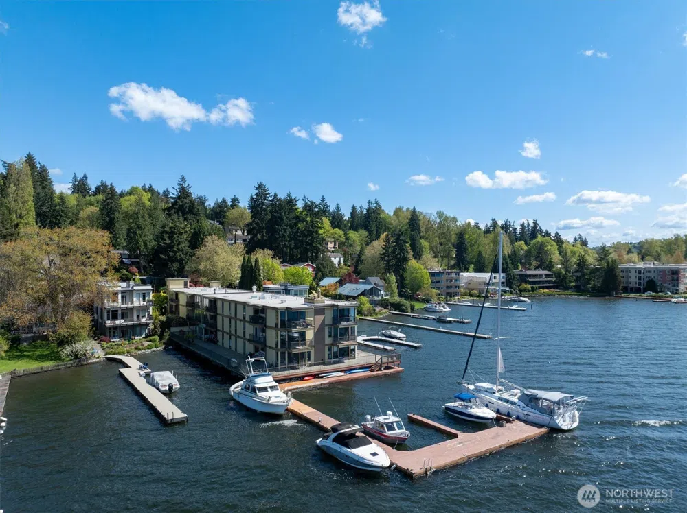 Waterfront, top floor condo minutes to Downtown Kirkland and Downtown Bellevue w/sparkling views of Lake Washington! 1BD 1BA unit with large covered balcony, family room with open floor plan & wood burning fireplace, kitchen with stainless steel appliances and eating space. Windows in family room and primary are floor-to-ceiling to fully enjoy the expansive views. Washer and Dryer in unit (additional coin-op laundry room). One assigned covered parking space and assigned storage space. Community features include secure access, gym, and sauna. Dock access and moorage slips available for rent. HOA covers water, sewer and garbage. Enjoy gorgeous sunsets and stunning views all year round with easy access to 405, 520, dining, shopping, and more!