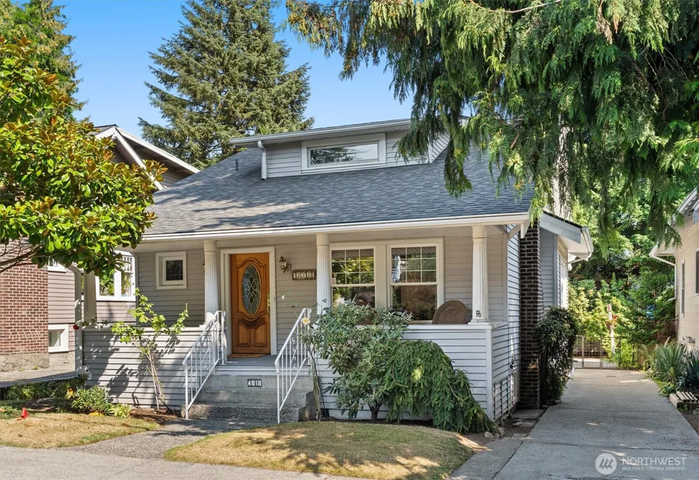 Charming Wallingford Craftsman on quiet street, refinished hardwoods and cozy gas fireplace. Brand new electrical to street, newer roof provide peace of mind. This home is a solid, basic value to buy into this sought-after neighborhood, remodel as you go for equity gain. Spacious living, dining rooms, bright kitchen. A back office/sunroom invites garden views. Main floor - primary bed, ¾ bath, bonus room; upstairs - 2 bedrooms and ½ bath. Enjoy the covered front porch, backyard offers newer trex style deck, hot tub, lush yard, garden. Basement could be finished for more living space, or use as is for workshop, crafts, laundry, storage. Driveway - add EV charger? Stanford Elem Geo Zone. Quick access I-5, 520, Eastside. Wallingford awaits!