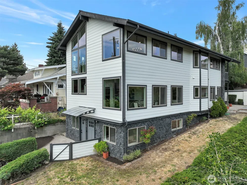 "Discover your perfect home in Phinney Ridge, close to downtown Seattle, Ballard, Fremont, and U Village. Enjoy nearby walks to the Zoo and Green Lake, plus breathtaking Mountain and Puget Sound views. This fully renovated home boasts new plumbing, electrical, roof, windows, siding, flooring, lighting, insulation, furnace, ductless A/C, dual hot water tanks, two laundry rooms, updated bathrooms, a stylish kitchen, wet bars, and a new garage with EV charging. The main floor features a primary bedroom and office, while the kitchen and wet bars include stainless steel appliances, quartz countertops, modern cabinets, and new vinyl hardwood floors. All bathrooms are refractically new. Each floor has its own separate entrance. Motivated Sellers!