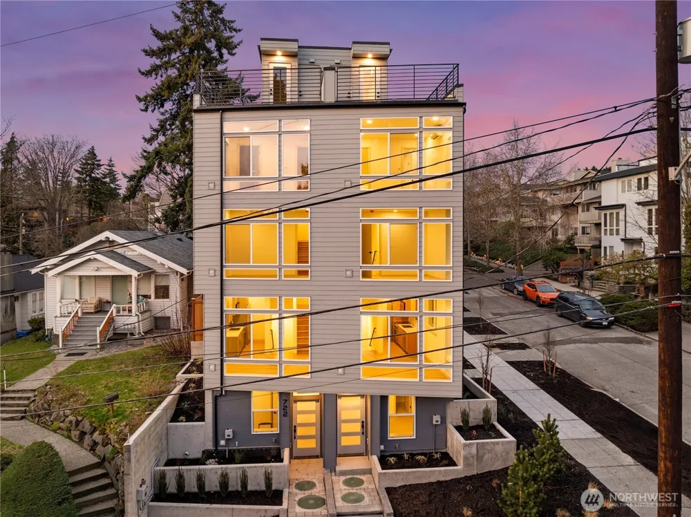 RATES AS LOW AS 3.25% W/PREFERRED LENDER(qualifications apply)! Discover elevated living in this architecturally bold corner townhome by MRN Homes in prime Fremont. Walls of glass, clean lines & dramatic natural light showcase a stunning open-concept floorplan anchored by a chef’s kitchen w/sleek quartz counters & Fisher & Paykel appliances. The top-floor primary suite offers a spa-inspired bath & large closet. Second bedroom on upper floor w/bath perfect for guests or WFH office. Expansive rooftop deck frames panoramic city & sunset views. Efficient mini-split for heating & A/C. No HOA dues & coveted 97 Walk Score. Near Google, Tableau, Gas Works Park, Fremont Canal Park, boutique shops, acclaimed dining & the iconic Fremont Sunday Market.