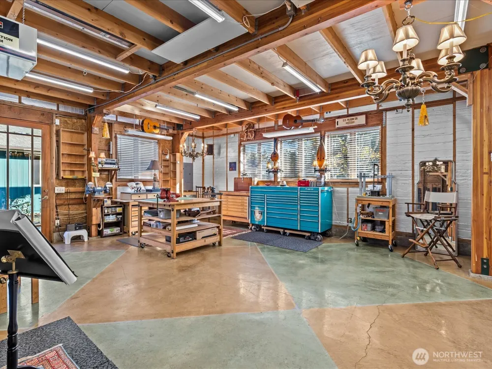 Got Shop? We do! Architecturally designed, professionally built 1000+sf SHOP/SPECIAL USE building- offering incredible flexibility for work, creativity or future expansion. DADU potential! BONUS: it comes with a cool, well preserved mid century home across from beloved Greenwood park. Thoughtfully maintained with original aesthetic intact, this home captures the timeless charm of 1955 design — clean lines, large windows, & a warm, inviting layout. 2 properties in one! Perfect for those seeking space for a home office, guests, rental income, or multi-gen living. Fully fenced sunny back yard also features charming potting shed & room to garden! Exciting location walking distance to our favorite spots. Great schools! Plentiful on site parking.